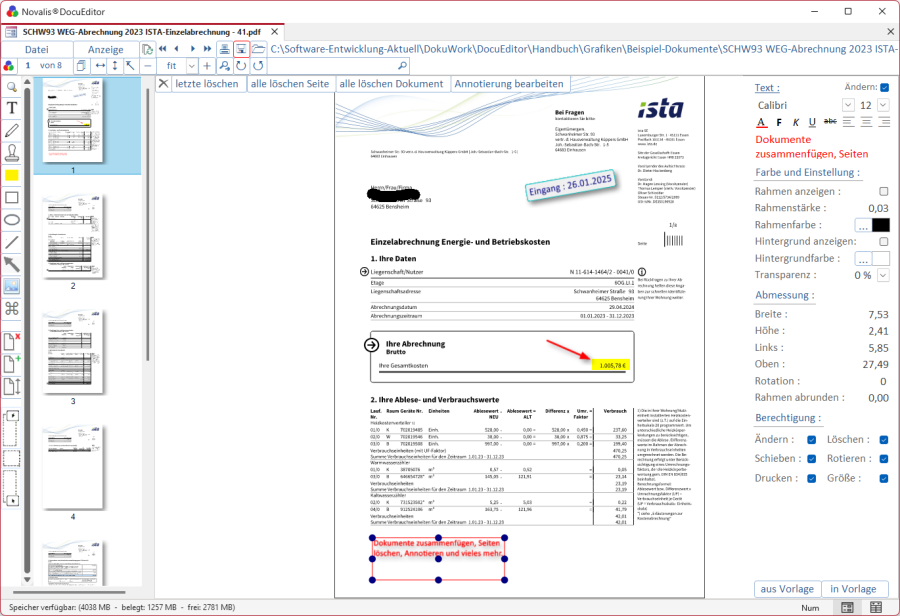 NOVALIS®DocuEditor ist ein Dokumenten-Editor, mit dem sich PDF-, Grafik- und Office-Dokumente mit Annotierungen versehen lassen (Stempel, Unterschrift, Anmerkungen, Textmarker usw.).